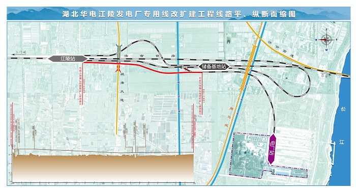 湖北華電江陵發(fā)電有限公司位于江陵煤電煤化產(chǎn)業(yè)園內(nèi),一期工程投資50億元建設(shè)2×660MW超超臨界燃煤發(fā)電機(jī)車,已于2017正式投入運(yùn)營,現(xiàn)階段主要通過港口來煤。主要沿荊州煤炭鐵水聯(lián)運(yùn)鐵路專用線上行線既有路基外側(cè)繞行,跨南新河后接入既有江陵電廠鐵路專用線區(qū)間正線。